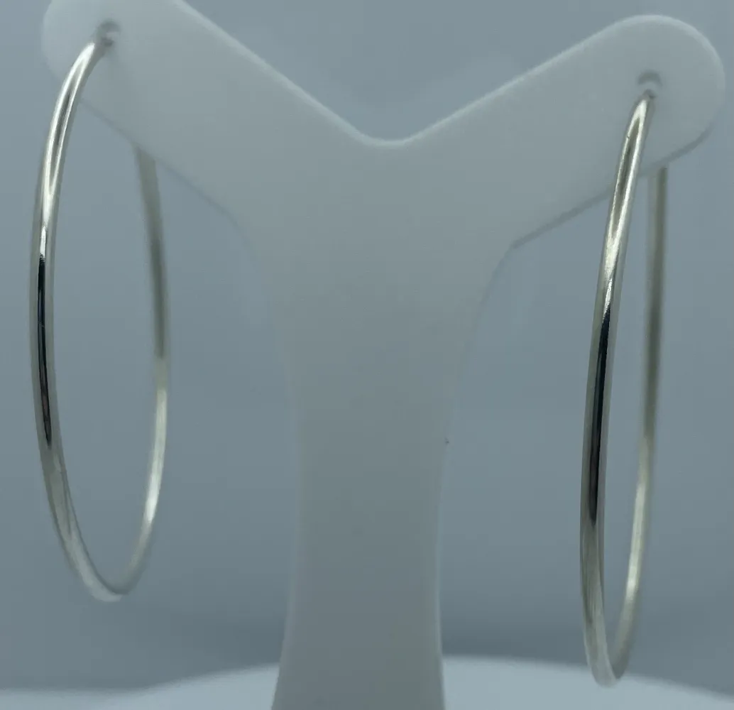 Apresentamos com orgulho nossas imponentes argolas de prata, uma fusão sublime de elegância e ousadia. Com um generoso diâmetro de 5,5 cm, esses brincos capturam a atenção com um toque moderno e sofisticado.