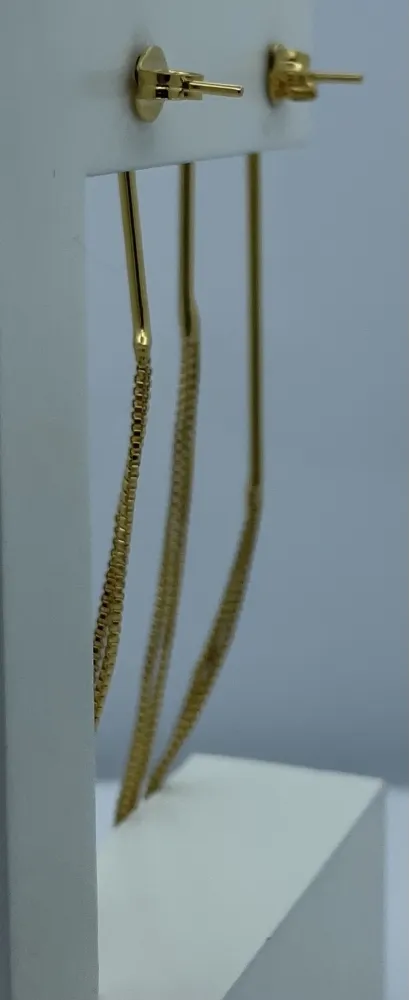 Deslumbre com nossos brincos deslumbrantes, que apresentam um impressionante comprimento total de 8 cm. Estes brincos são a manifestação máxima de elegância e estilo, proporcionando um visual marcante que não passa despercebido.