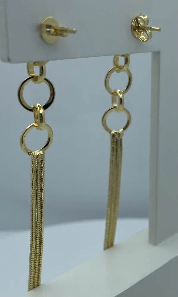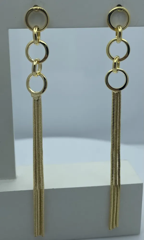 Deslumbre com nossos brincos de franja, uma escolha elegante para adicionar movimento e sofisticação ao seu visual. Com um tamanho total de 8 cm de comprimento, esses brincos proporcionam uma presença marcante e cativante. A franja elegante e fluente cria um efeito visual hipnotizante à medida que dança ao redor do seu rosto.