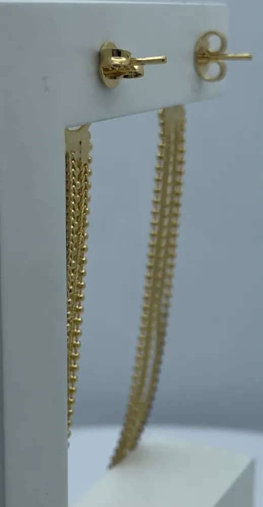 Cada brinco é uma obra-prima de design, cuidadosamente trabalhado para criar um efeito visual encantador. Feitos com um acabamento em ouro folheado de alta qualidade, esses brincos são resistentes e duráveis, mantendo sua beleza ao longo do tempo.