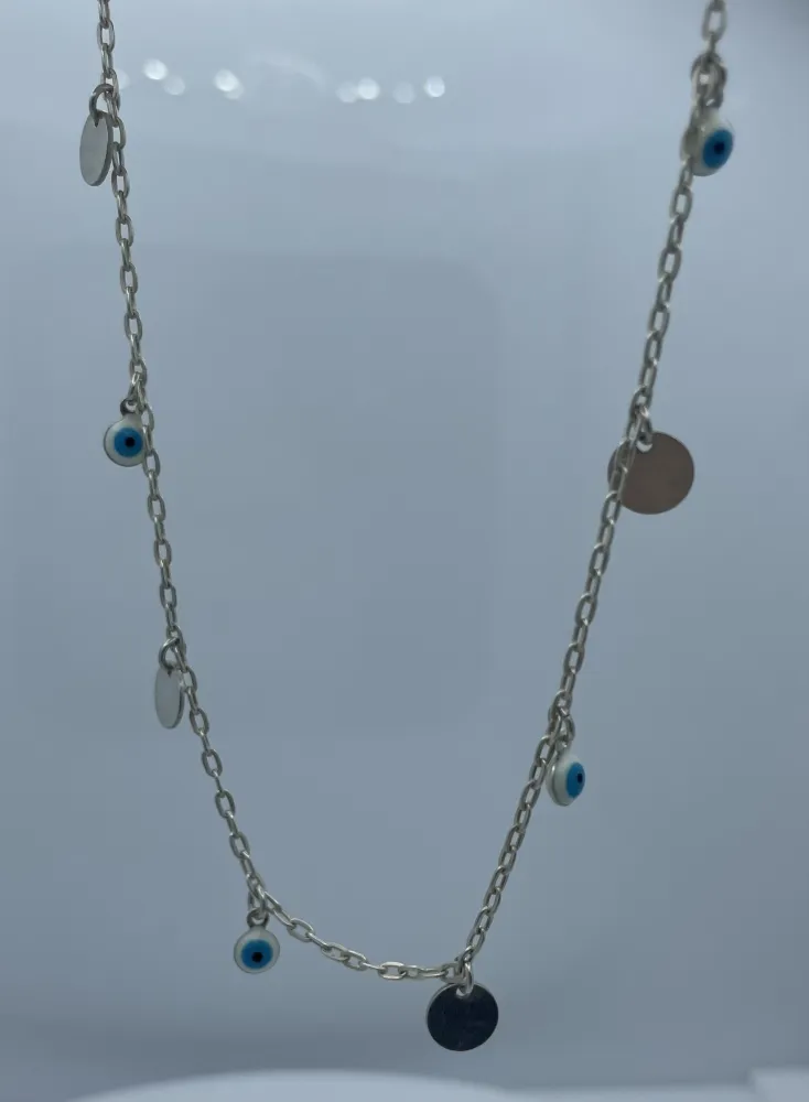Os elos finamente trabalhados em prata criam uma base sólida e elegante para os olhos gregos, evocando uma sensação de mistério e charme. Os olhos gregos são conhecidos por sua capacidade de afastar o mau-olhado e atrair boas energias, fazendo deste colar mais do que uma joia, mas um amuleto especial carregado de significado.