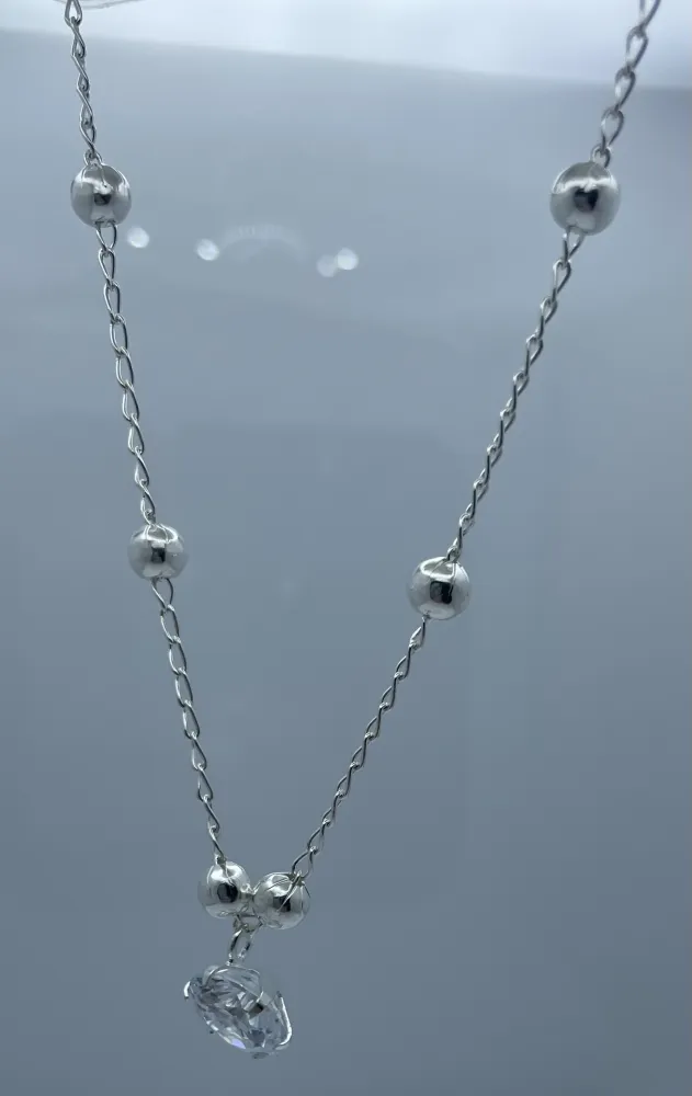 O design clássico dos elos em prata proporciona uma base elegante para o pingente, enquanto a pedra em formato de diamante captura a luz de maneira encantadora, adicionando um brilho deslumbrante à sua aparência. A simplicidade e elegância deste colar tornam-no versátil, adequado para uso diário ou para ocasiões mais especiais.