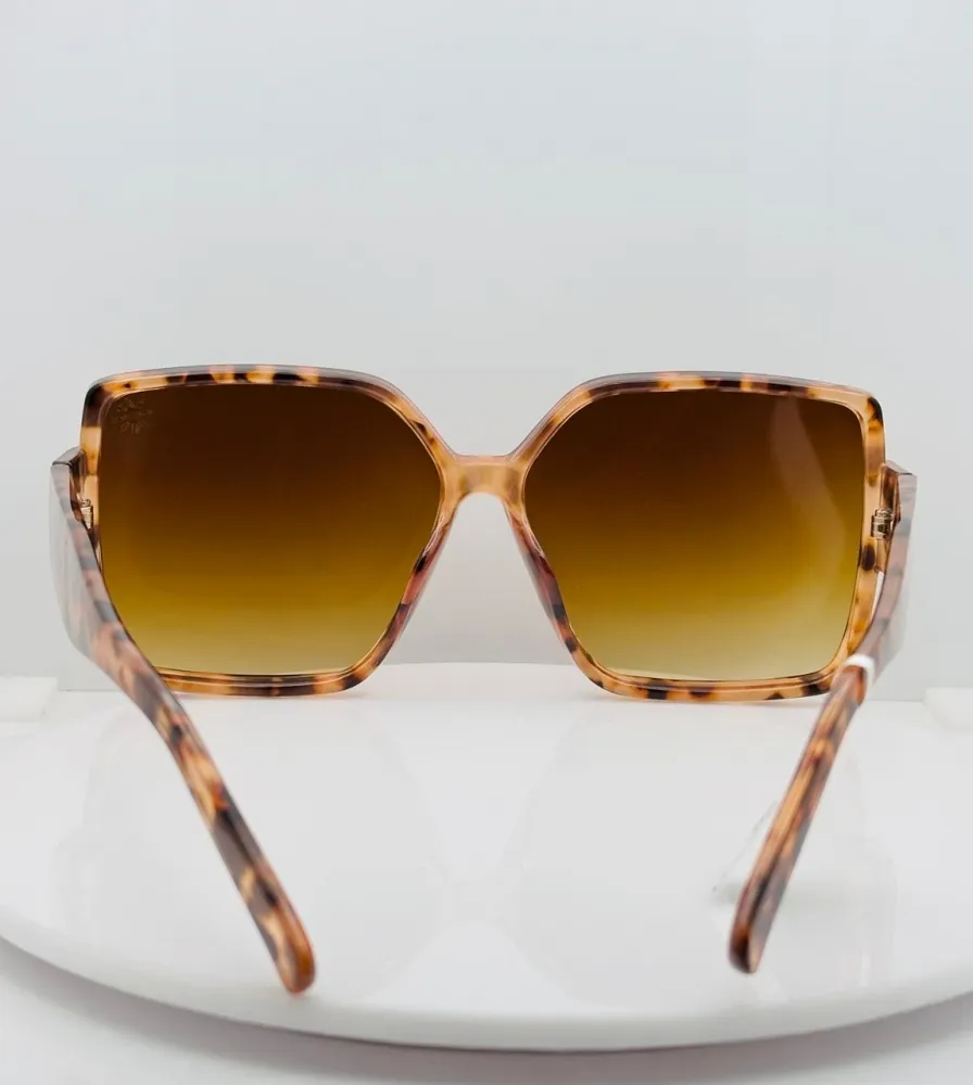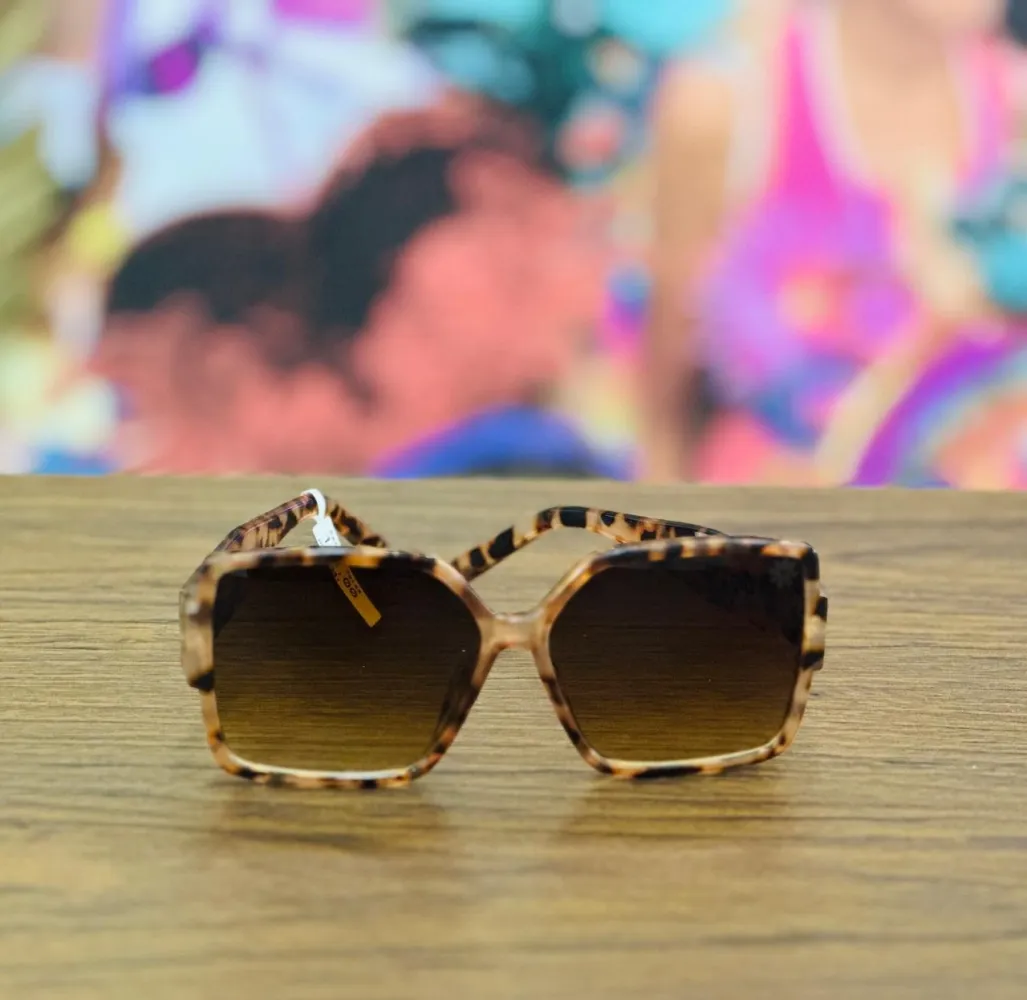 Esse óculos é puro estilo e sofisticação! Com um design moderno e armação robusta em padrão tartaruga, ele traz um toque de elegância e personalidade para qualquer look. As lentes grandes e levemente degradê proporcionam proteção e conforto visual, além de um charme irresistível. Perfeito para quem gosta de se destacar com um acessório marcante e cheio de atitude!