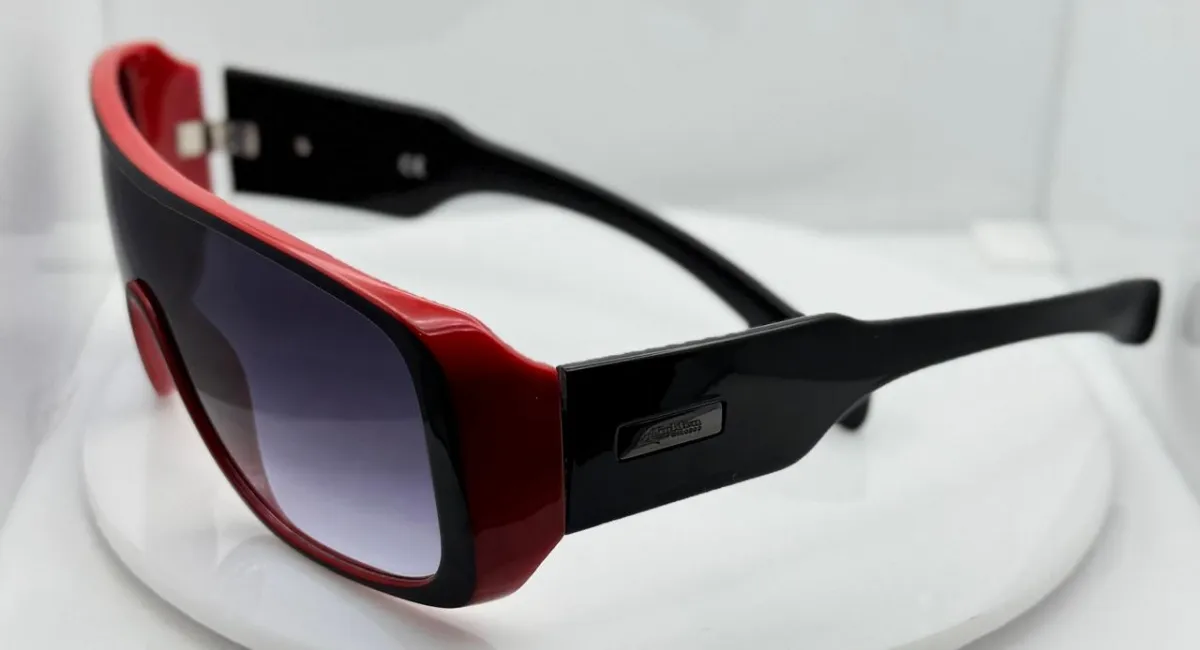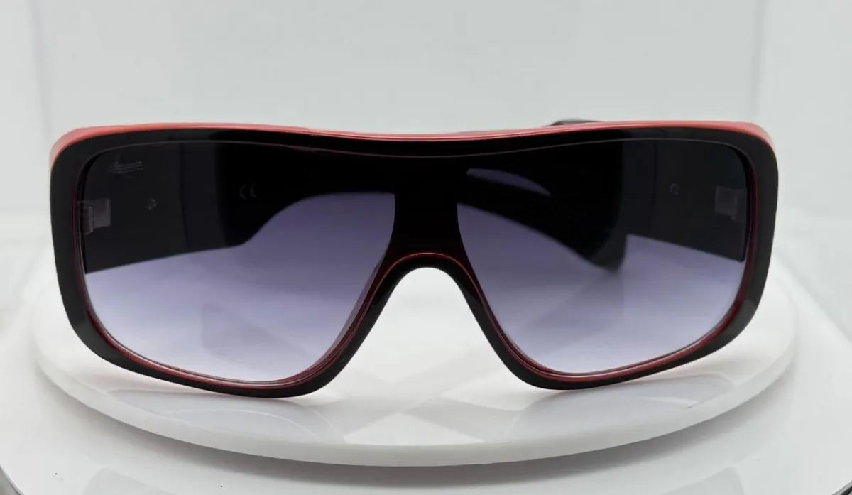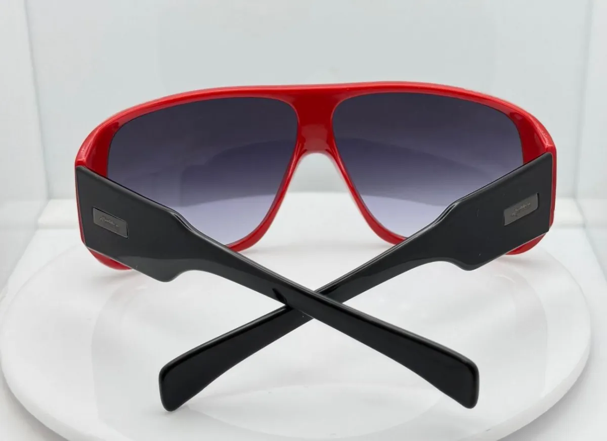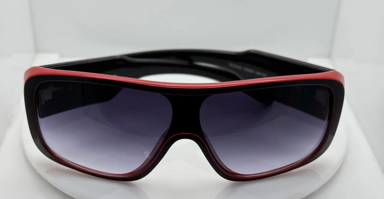 Este óculos de sol impressiona logo de cara com sua armação ampla em preto e detalhes em vermelho, criando um visual marcante e cheio de personalidade. A combinação de cores confere um ar esportivo e ao mesmo tempo sofisticado, perfeito para quem gosta de acessórios que fogem do convencional.