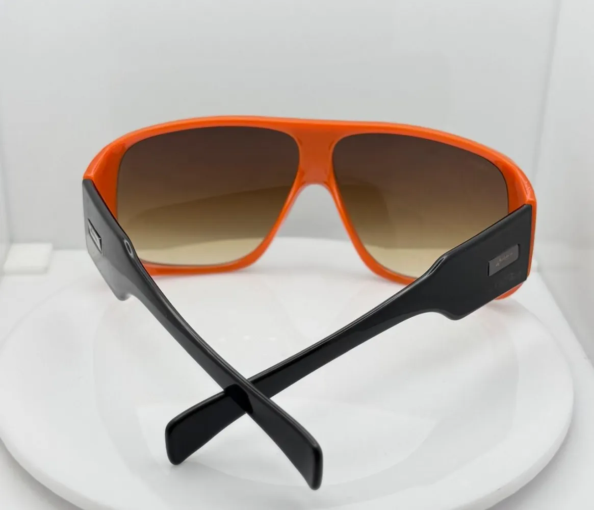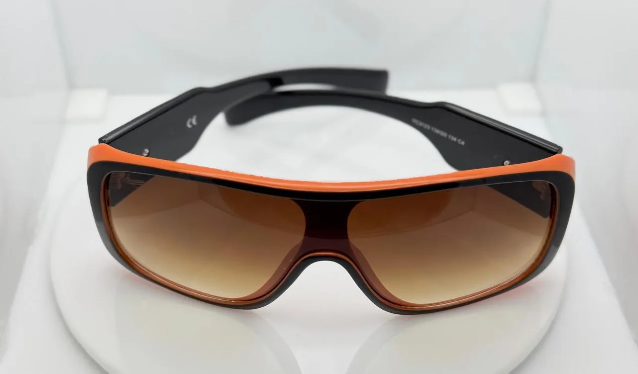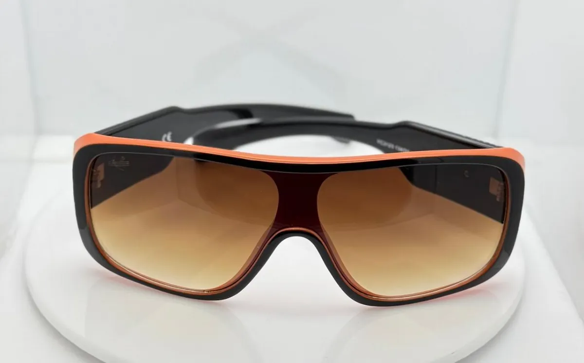Este óculos de sol impressiona logo de cara com sua armação ampla em preto e detalhes em vermelho, criando um visual marcante e cheio de personalidade. A combinação de cores confere um ar esportivo e ao mesmo tempo sofisticado, perfeito para quem gosta de acessórios que fogem do convencional.