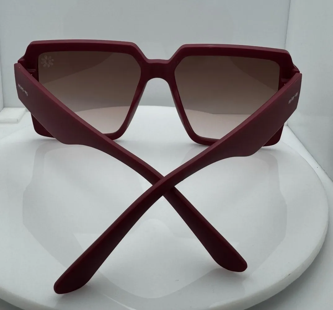 Este óculos de sol é a definição de sofisticação com um toque de ousadia. Com um design imponente e moderno, ele apresenta uma armação geométrica marcante em um tom vermelho intenso, que transmite personalidade e elegância. Seu formato quadrado angular reforça um visual arrojado, perfeito para quem deseja se destacar e agregar um toque fashionista ao look.
