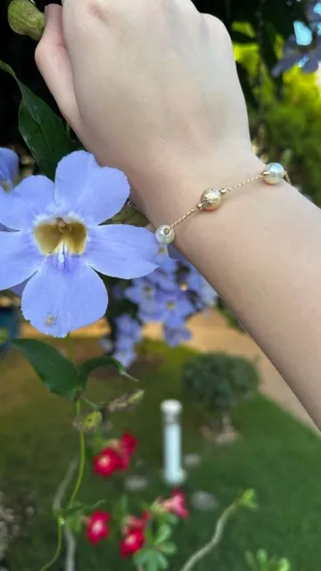 Elegante, atemporal e com um toque contemporâneo, a pulseira folheada a ouro com 3 pérolas e 2 bolas jateadas é muito mais do que um acessório: é uma verdadeira declaração de estilo e sofisticação, perfeita para mulheres que valorizam o detalhe e a exclusividade.