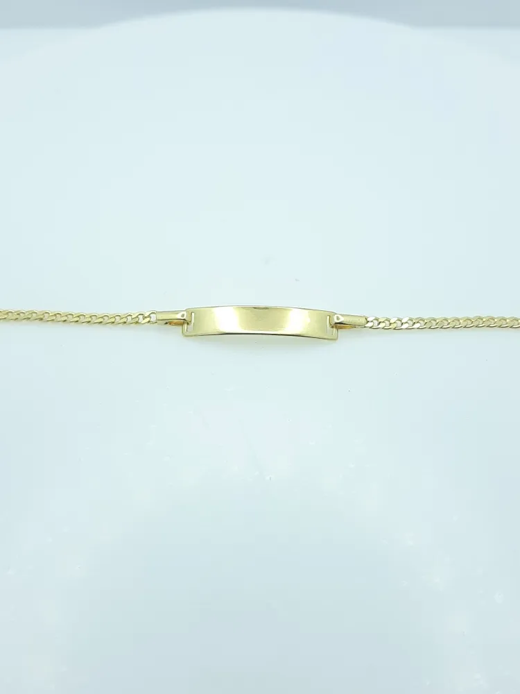Pulseira infantil folheada a ouro, 15cm, com chapinha e corrente groumet